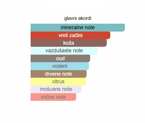 - Srednje note: Toplije, začinsko-drvenaste note čine srce parfema. One daju dubinu, muževnost i karakter, ističući njegu prepoznatljivu sofisticiranost.